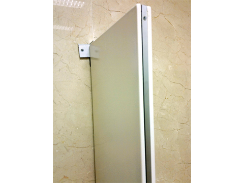 Nuestras mamparas de baño troqueladas están integradas con un bastidor de perfil tubular calibre 18 zintro, relleno interior de placa de poliestireno, forradas en ambas caras con lámina calibre 20 porcelanizada con dobleces en los cantos y moldura de aluminio o acero inoxidable entre las dos caras; herrajes y pasadores para su correcta fijación.