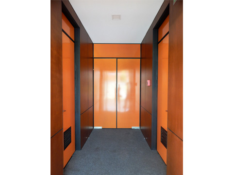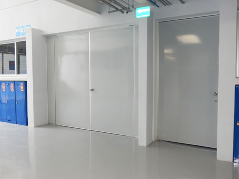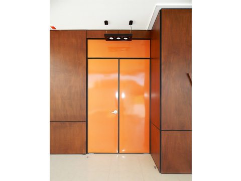 Nuestras puertas de acceso están integradas por un bastidor de perfil tubular calibre 20 zintro de 1”, relleno interior de placa de poliestireno de 1” x 12 kg/m³, forradas en ambas caras con macopan de 3 mm., lámina en acabado porcelanizado o acero inoxidable, complementándose con marcos y contramarcos de aluminio anodizado, herrajes y chapas para su correcta fijación.